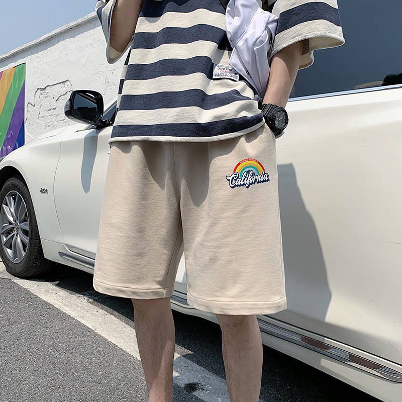 港风日系复古男生学生夏季新款潮流针织运动裤五分裤宽松沙滩短裤