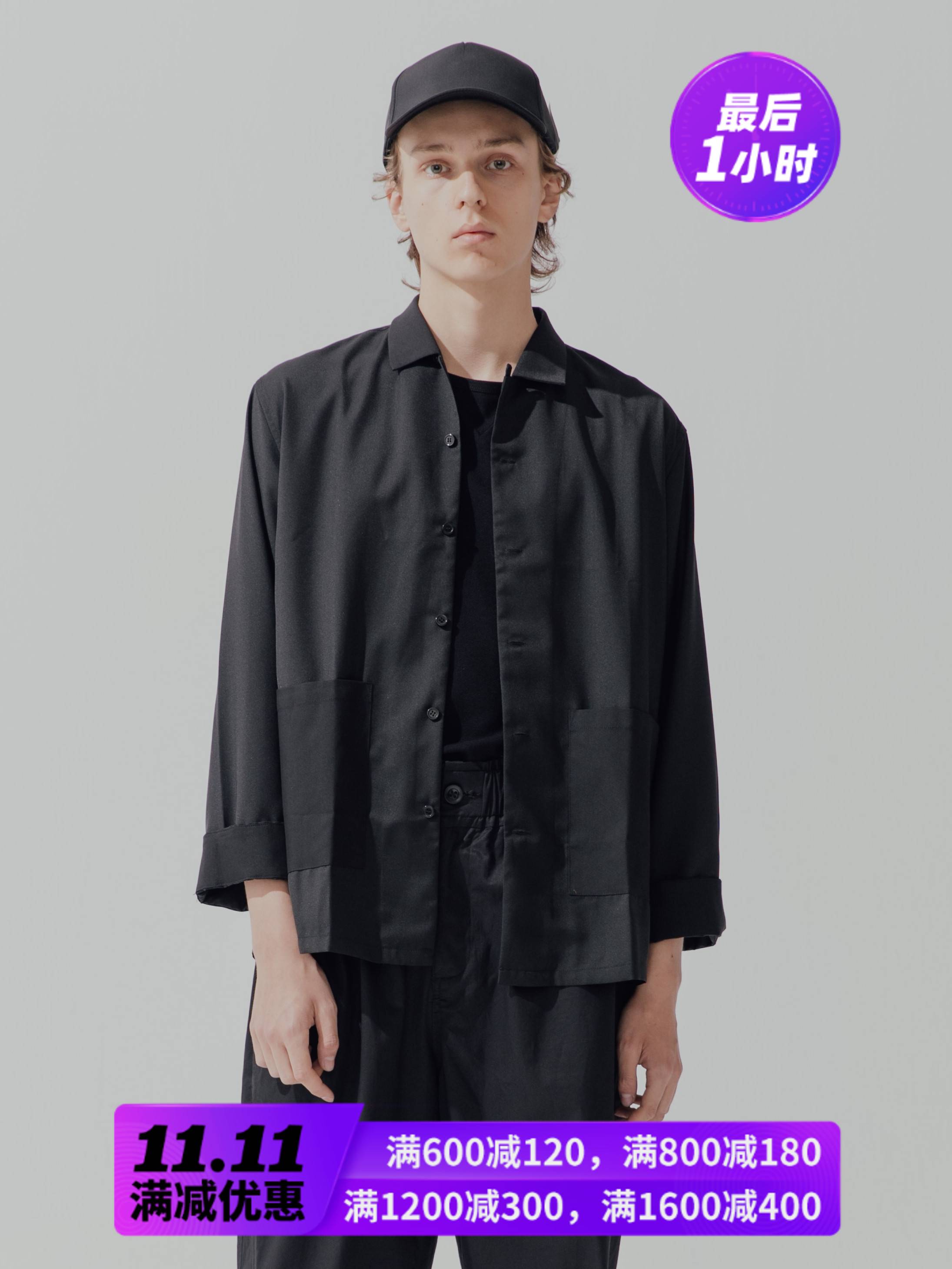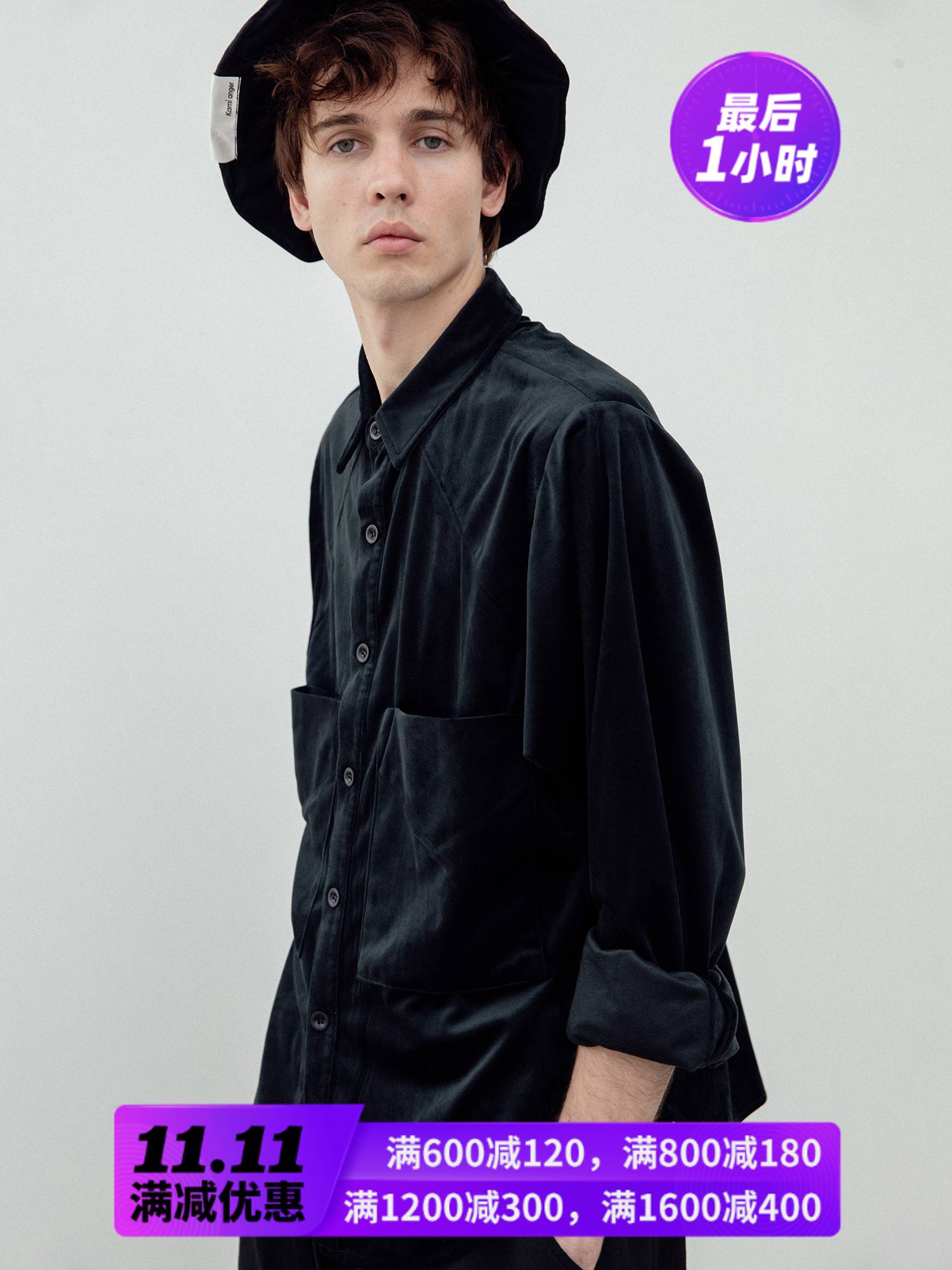 原创设计师品牌KAMI ANGER法兰绒大口袋衬衫男宽松纯色薄绒厚衬衣