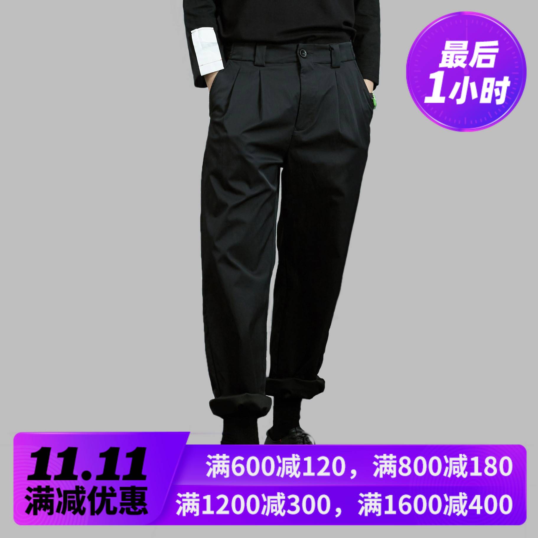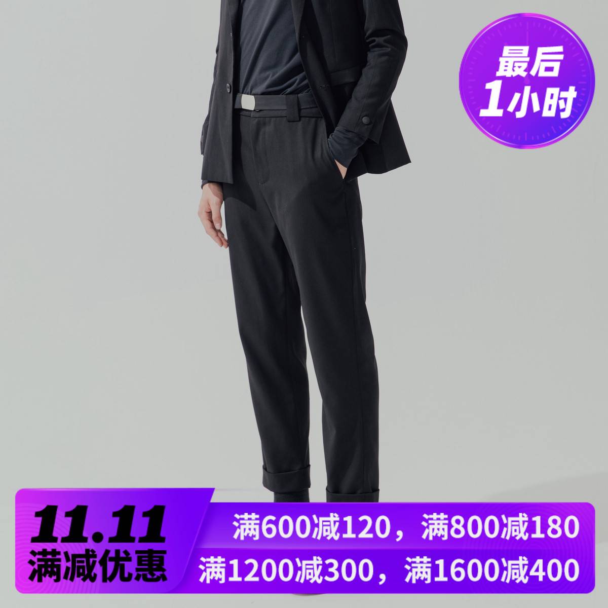 独立师品牌KAMI ANGER春秋黑色纯棉垂坠修身直筒折边男士西装长裤