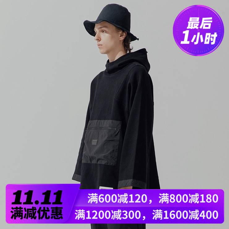 独立设计师品牌KAMI ANGER插肩袖超宽松套头连帽卫衣男暗黑系外套