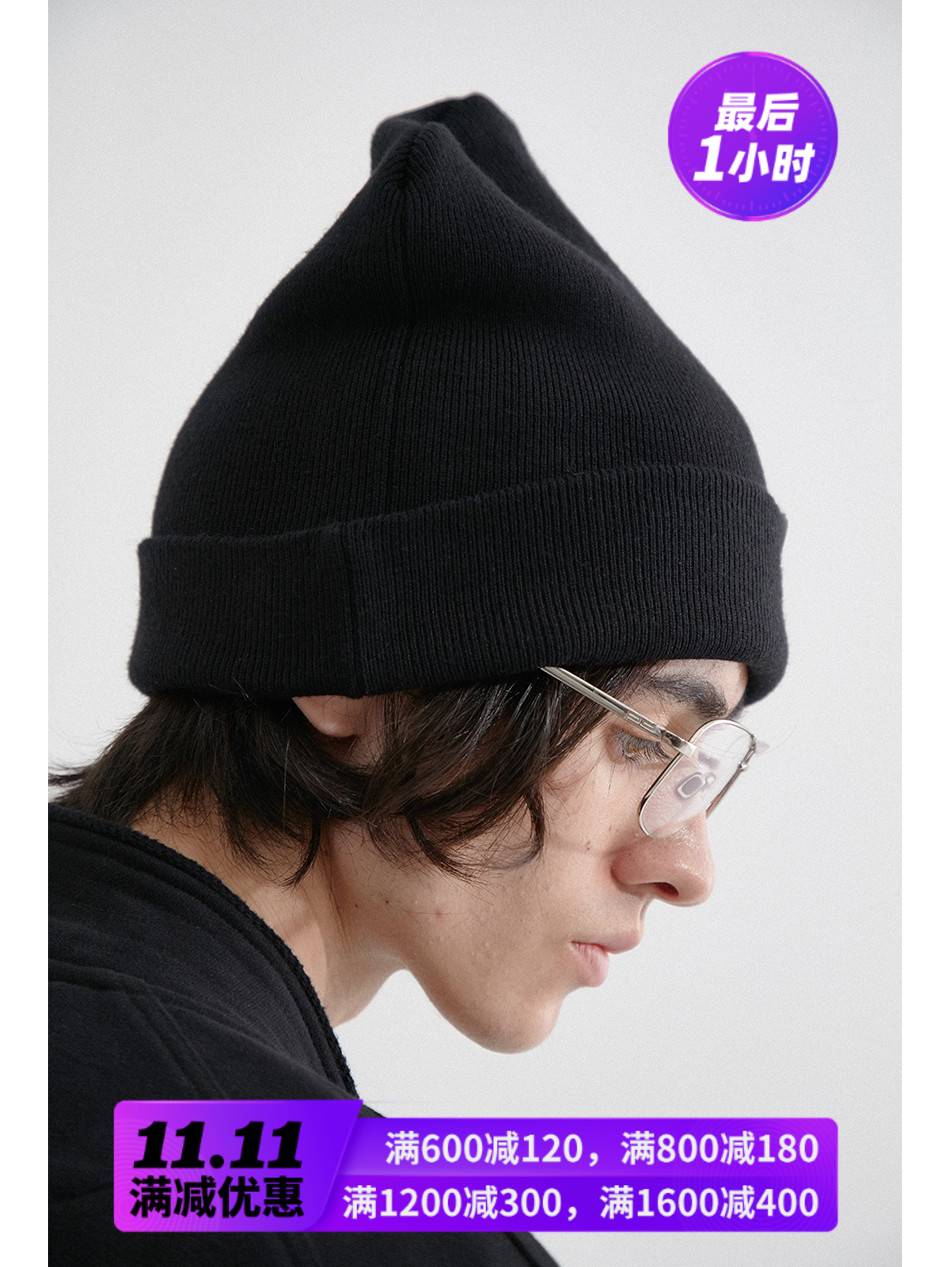 Kami anger (#000000)白标装饰黑色冷帽秋冬季套头雅痞针织毛线帽