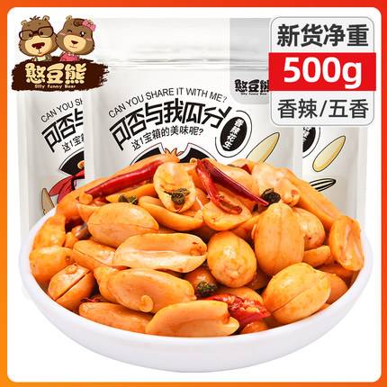 憨豆熊香辣花生米5斤五香麻辣油炸花生下酒菜酒友鬼袋装零食小吃