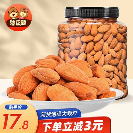 【憨豆熊】巴旦木仁500g大杏仁坚果原味微咸巴坦木扁桃仁袋装零食