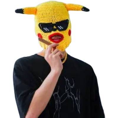 沙雕皮卡丘头套抖音搞怪毛线针织卡通面罩树脂款迪迦全脸发光头盔