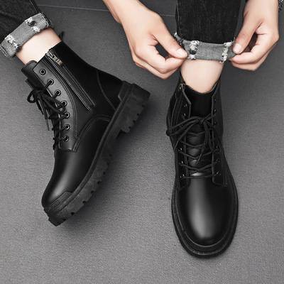 秋季经典圆头马丁靴男款英伦风高帮机车拉链工装靴子厚底短靴透气