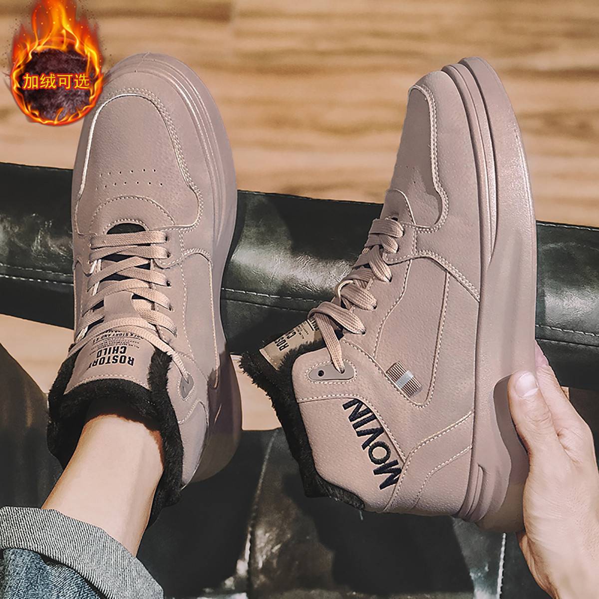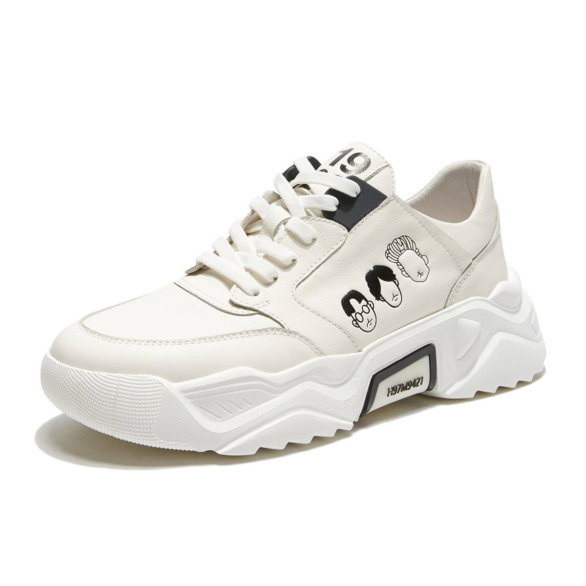 19年冬季新款男士牛皮时尚个性印花厚底休闲鞋男鞋