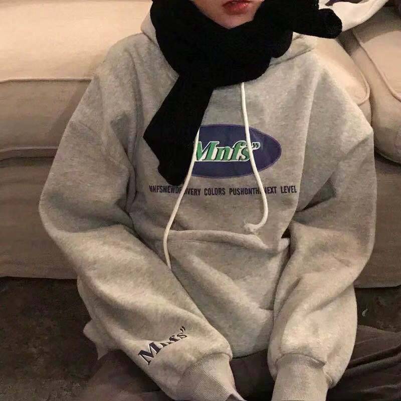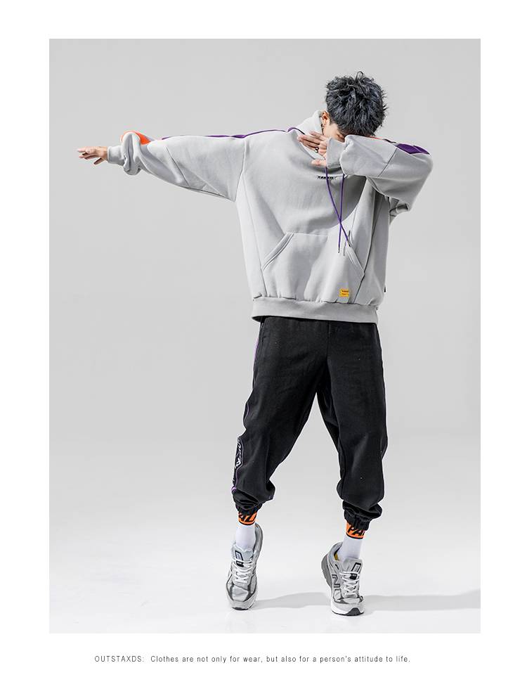 WSWJ欧美街头加绒卫衣男套头撞色连帽衫宽松外套oversize情侣上衣