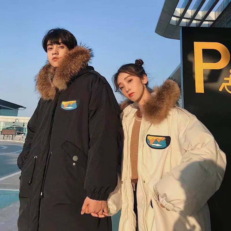 奥色OHSARE棉衣男冬季中长款韩版宽松加厚毛领男女情侣棉服外套潮