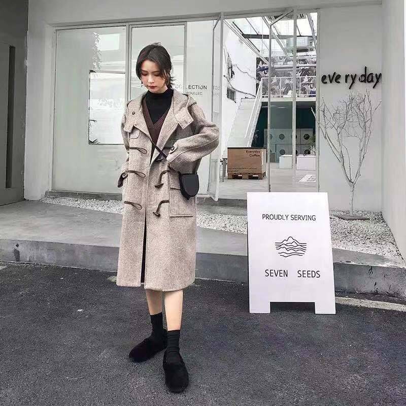 小个子毛呢外套女中长款秋冬2018新款韩版牛角扣学院风呢子大衣
