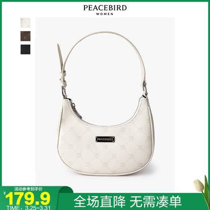 太平鸟月牙满印腋下包包2022春夏白色简约高级感手提女包通勤包