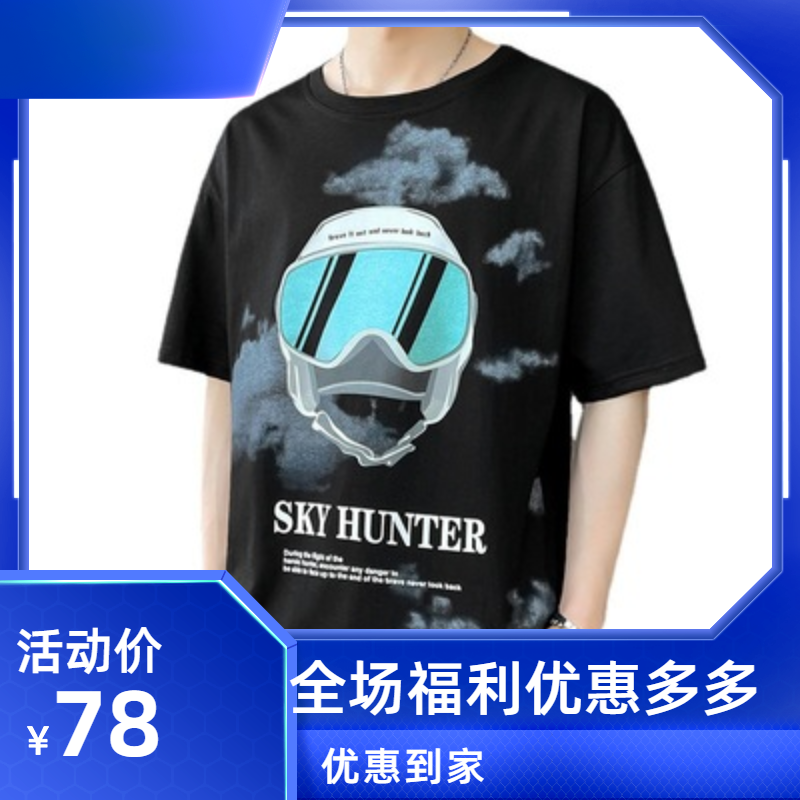fashion男潮牌夏季港风痞帅袖潮男大学生搭配潮流帅气短袖T恤