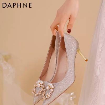达芙妮婚鞋2022女鞋夏款秀禾婚纱两穿新娘鞋不累脚香槟色高跟鞋女