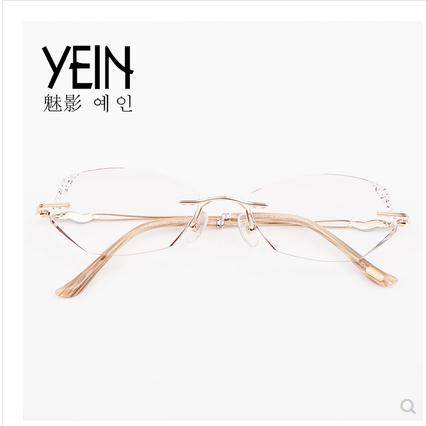 实体店正品YEIN魅影NO.8306无框眼镜 韩国原装切边镶钻 加膜镜片