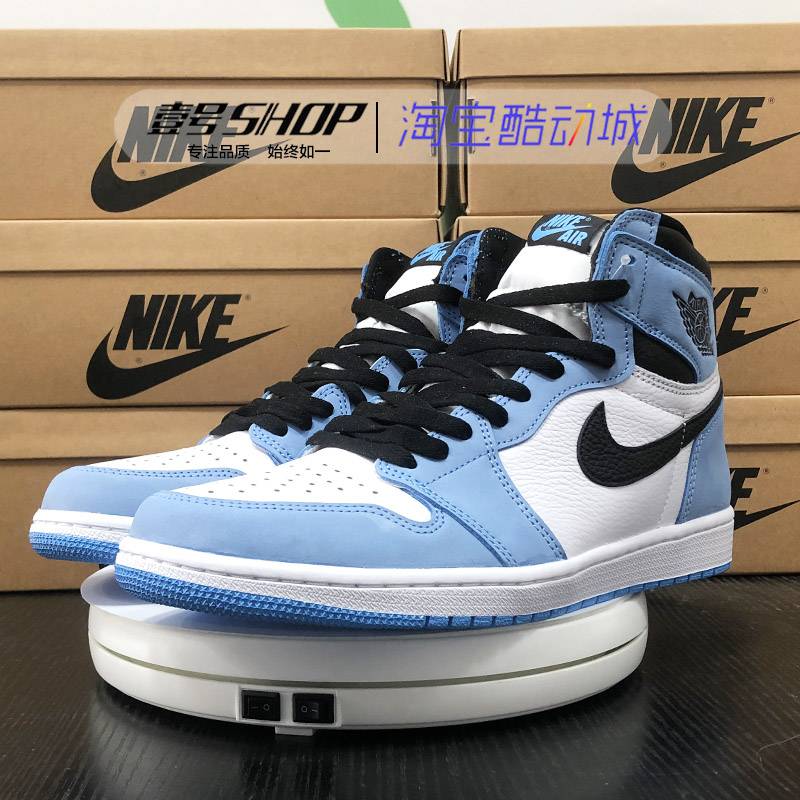 壹号Air Jordan1 AJ1黑曜石 白蓝脚趾北卡蓝高帮篮球鞋
