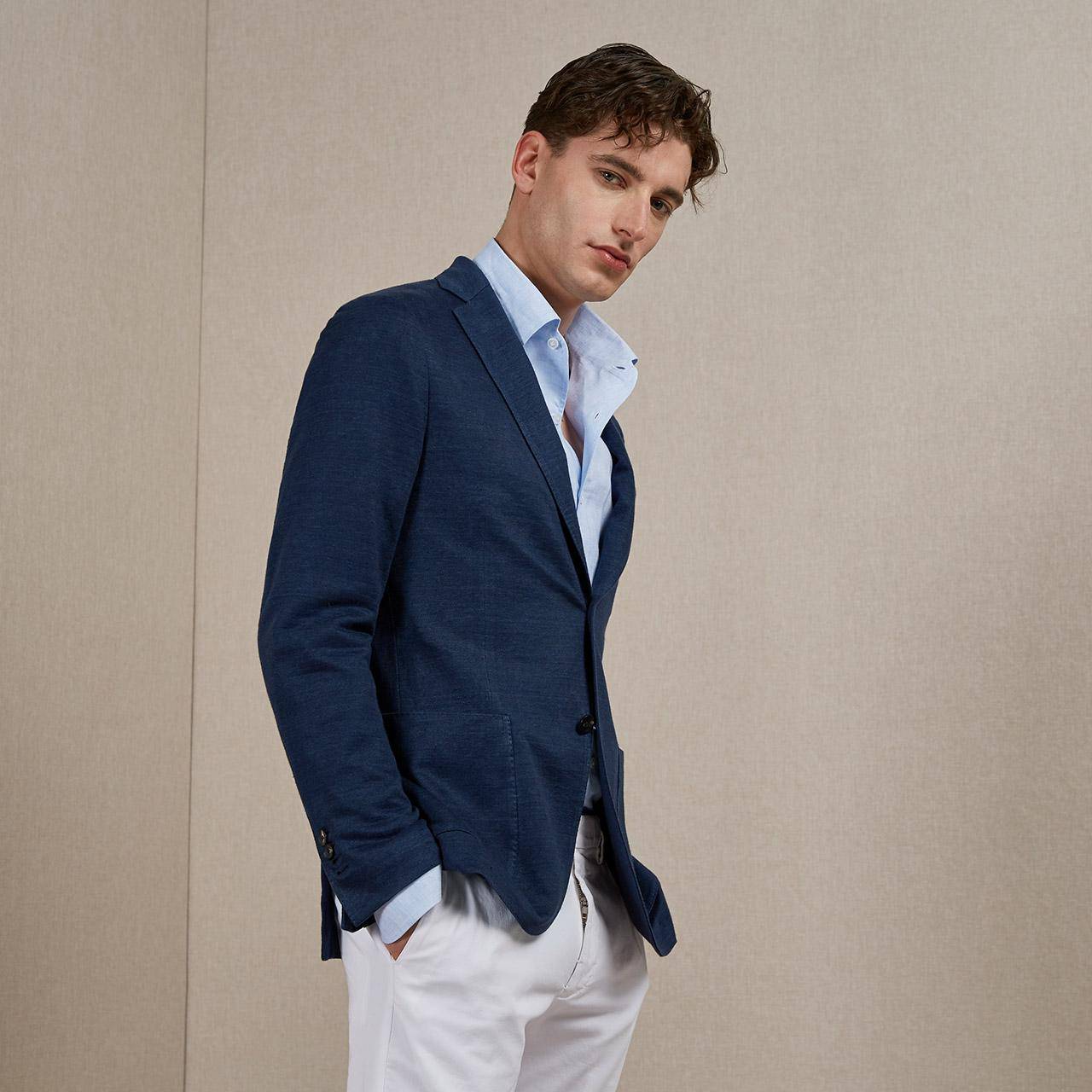 By Creations Lardini亚麻面料男士单排扣针织西服外套