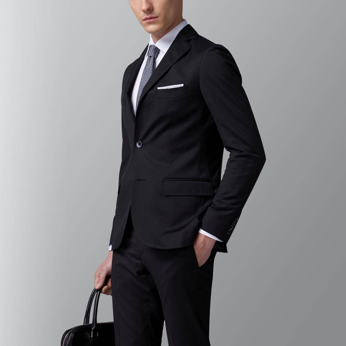 By Creations 春夏新款Prime防水抗皱羊毛黑色西服套装