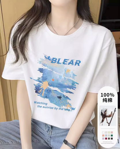 ZR真维斯白色短袖女夏季 2023新款圆领t恤女百搭休闲感纯棉女上衣