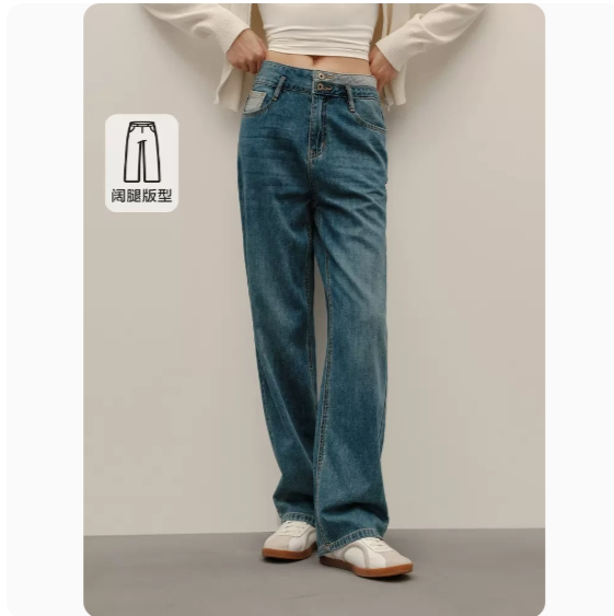 森马牛仔裤女高腰阔腿裤2023秋新款长裤百搭