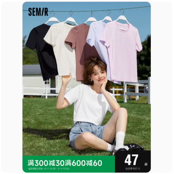 森马短袖T恤女白色简约基础2023夏新款女士体恤打底衫