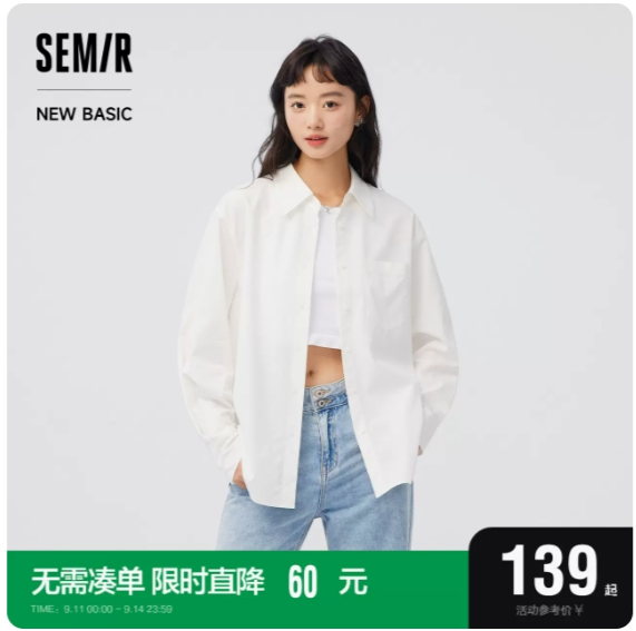 森马长袖衬衫女中长款oversize秋2023新款基础纯色衬衣