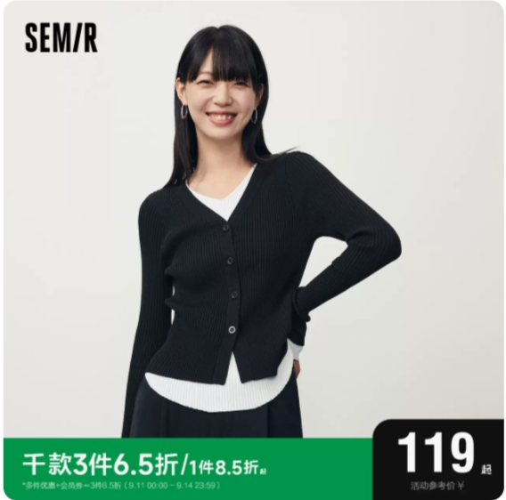 森马毛衣女短款假两件气质撞色2023新款秋百搭紧身V领套头衫显瘦