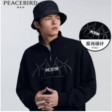 太平鸟男装卫衣连帽印花重磅面料刺绣时尚休闲纯棉男士