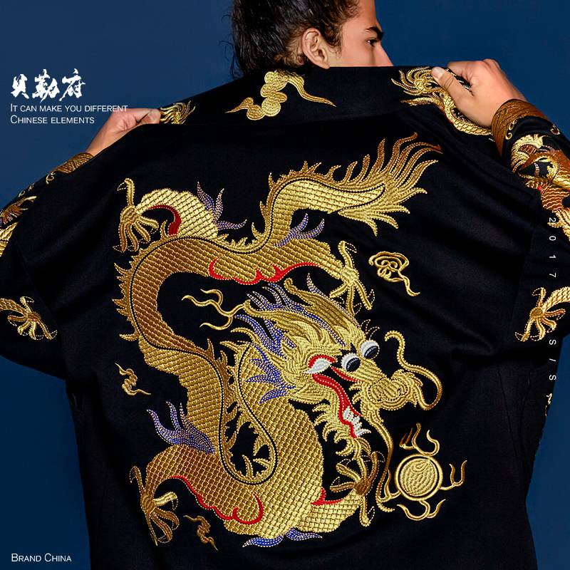 贝勒府中国风刺绣金龙袍外套男秋冬宽松大码和服大衣潮流嘻哈汉服