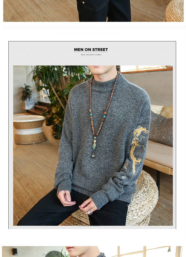 刺绣中国风半高领毛衣男加肥加大码潮胖子宽松套头外套针织衫秋冬
