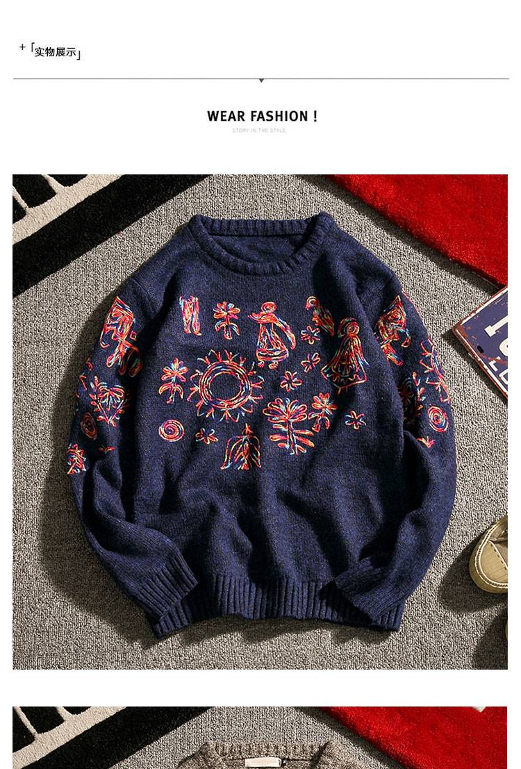 中国风男士毛衣韩版潮 仙鹤刺绣针织衫2018新款 冬季圆领秋装