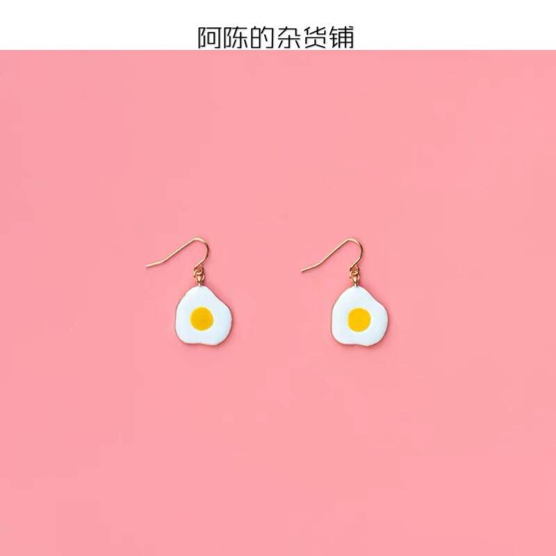 阿陈的杂货铺 超Q荷包蛋 搞怪趣味食物日系可爱软妹风耳环耳夹