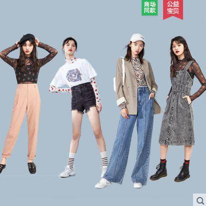 2020春夏新款批发松紧腰高腰牛仔裤女宽松直筒显瘦阔腿长裤