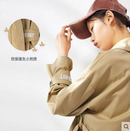 2019秋季新款品牌女装英伦气质纯色长袖西装领双排扣女式风衣外套