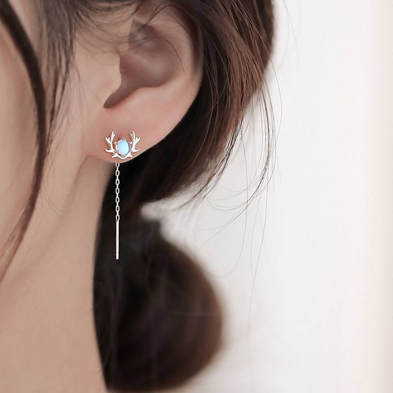 s925银月光石鹿角耳线女秋冬款2022年一鹿有你流苏耳线高级感耳坠