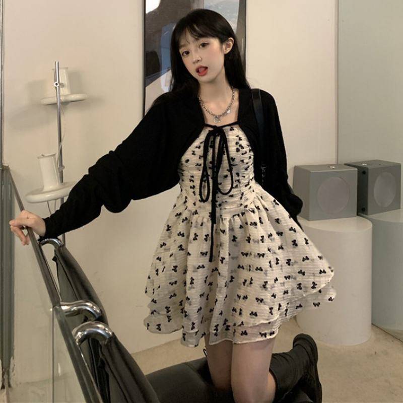 纯欲风高腰修身吊带约会2022春连衣裙小个子开衫外套