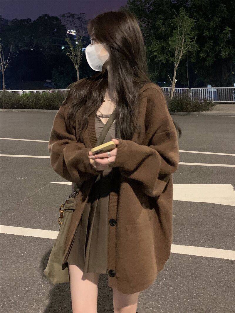 纯欲甜辣风针织开衫外套女秋冬新款炸街上衣百褶裙