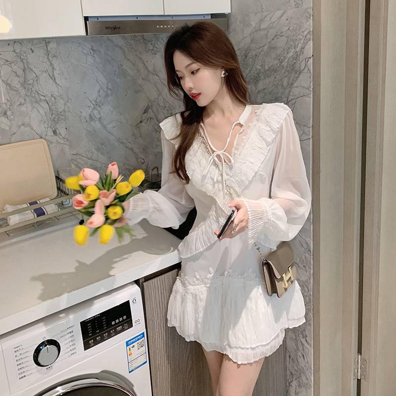纯欲花边设计感裙子仙气显瘦连衣裙