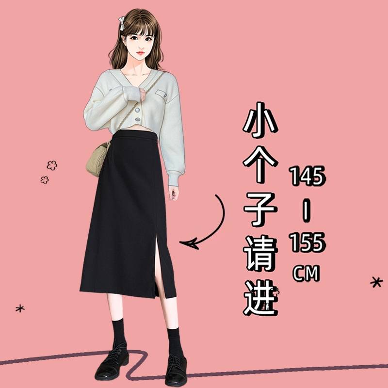 150矮小个子秋装搭配显高显瘦高腰a字裙子早秋穿搭开叉半身裙xxs