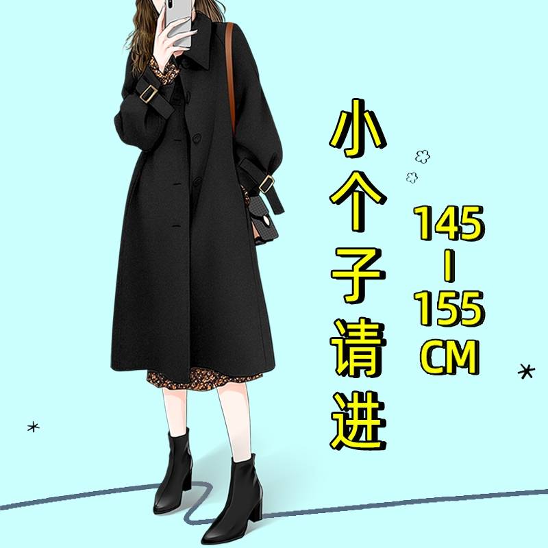 外套女冬小个子秋冬装搭配显高150呢子上衣赫本风黑色毛呢大衣xxs