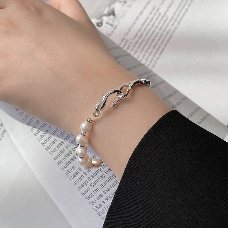 S925纯银不规则树枝巴洛克珍珠手镯 小众设计半镯搭扣拼接手链女 146.00 已售:0件