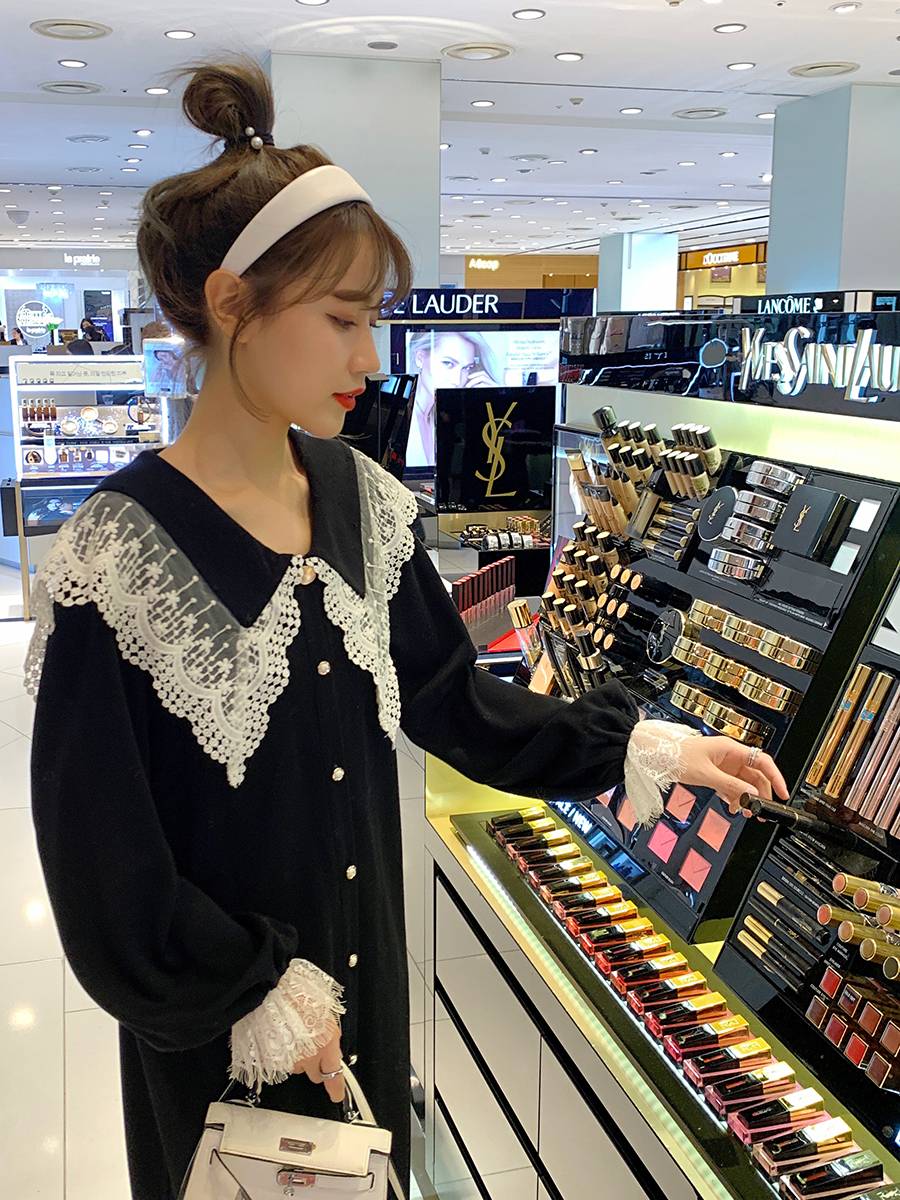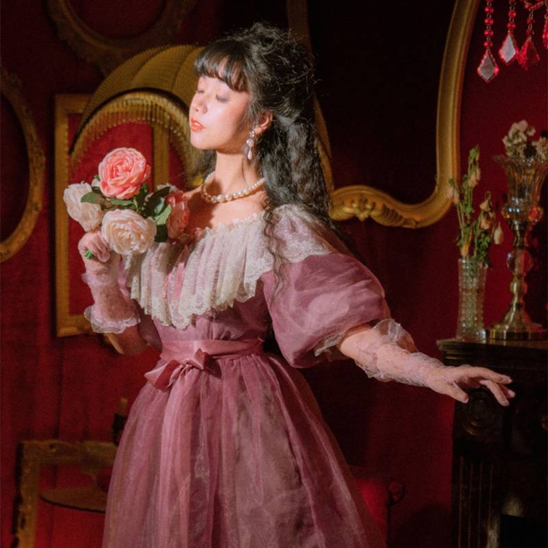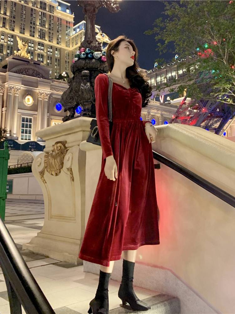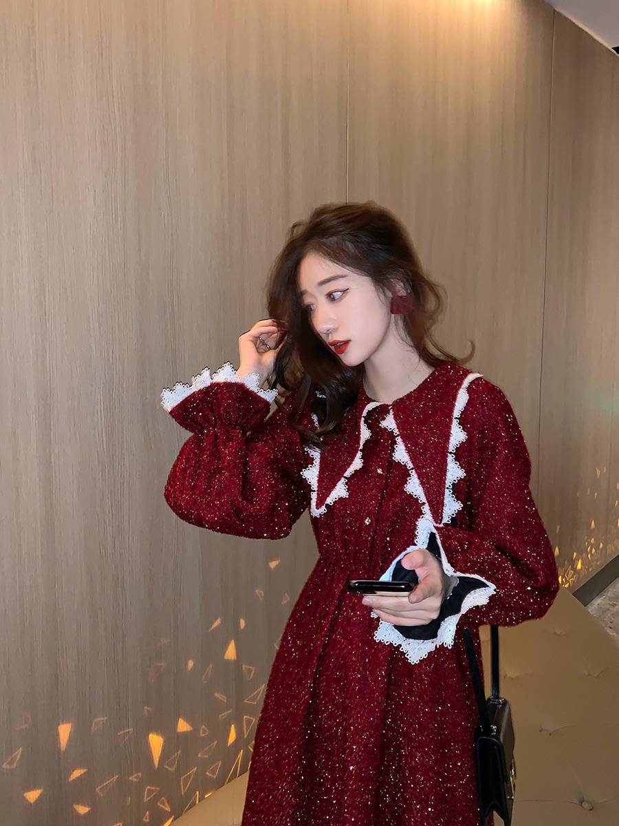 2021年春季款泡泡袖格子连衣裙女收腰显瘦法式娃娃领九分袖裙子