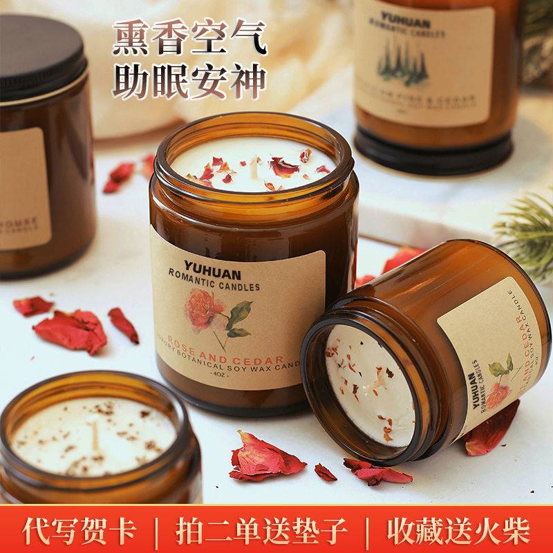 香薰蜡烛助眠女淡香卧室房间室内持久留香熏香烛台摆件礼物伴手礼