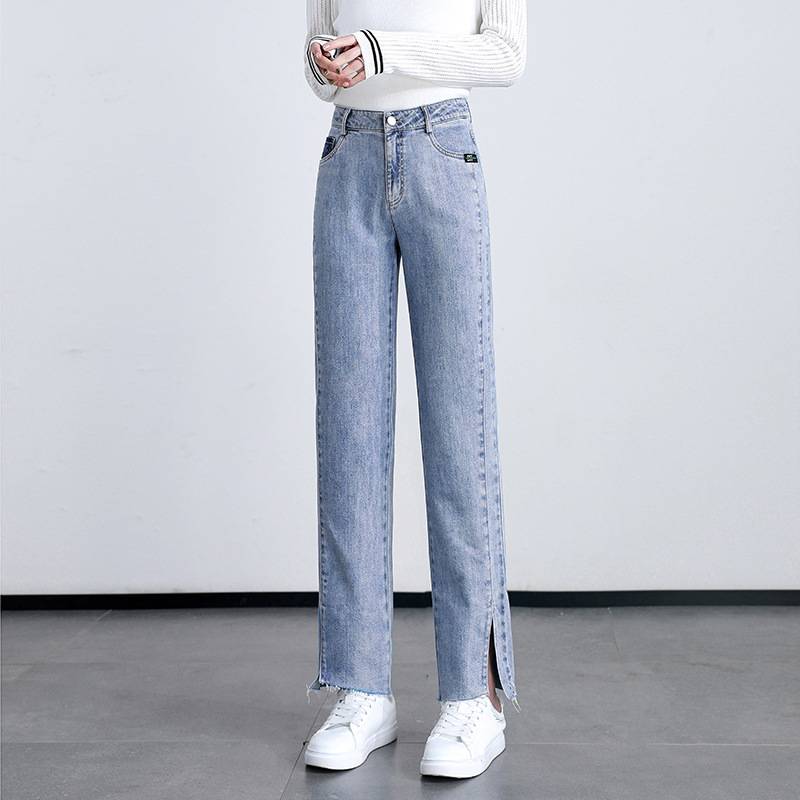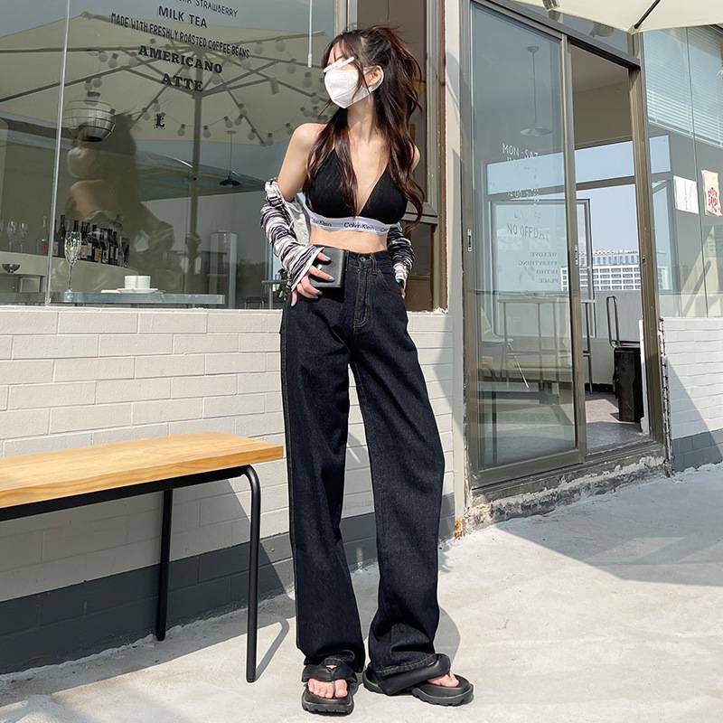 二十一晚装高腰牛仔裤女夏季薄款2022年新款宽松阔腿显瘦辣妹