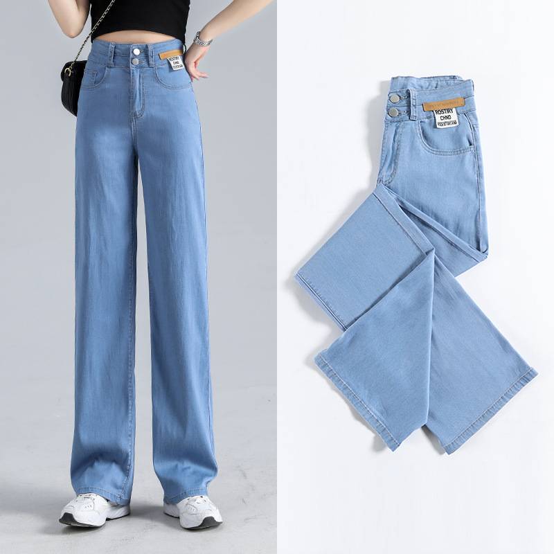 二十一晚装阔腿牛仔裤女夏季薄款宽松高腰直筒垂感显瘦夏天长裤子