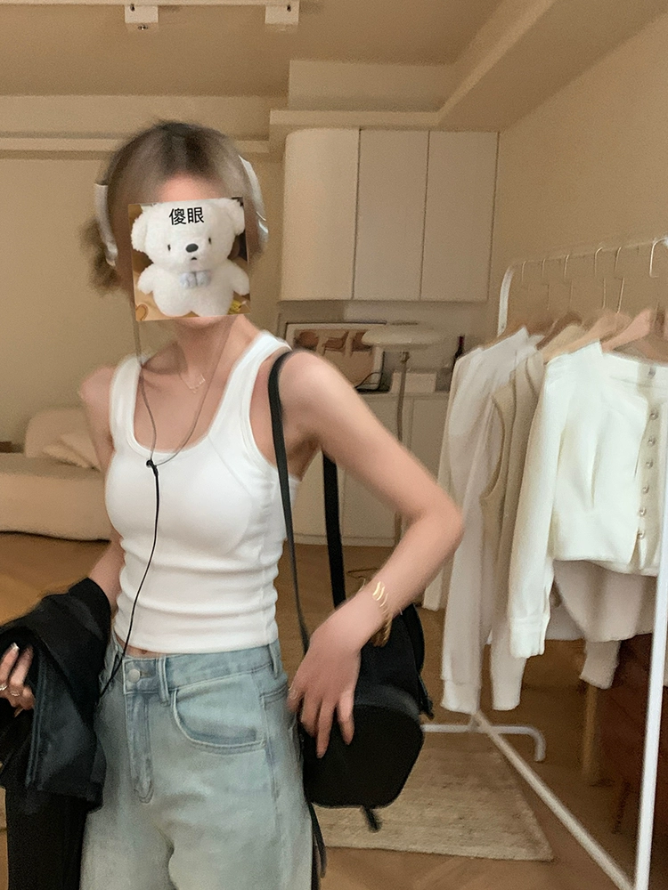 乌77百搭带胸垫吊带背心女内搭小个子交叉露背显瘦短款无袖上衣