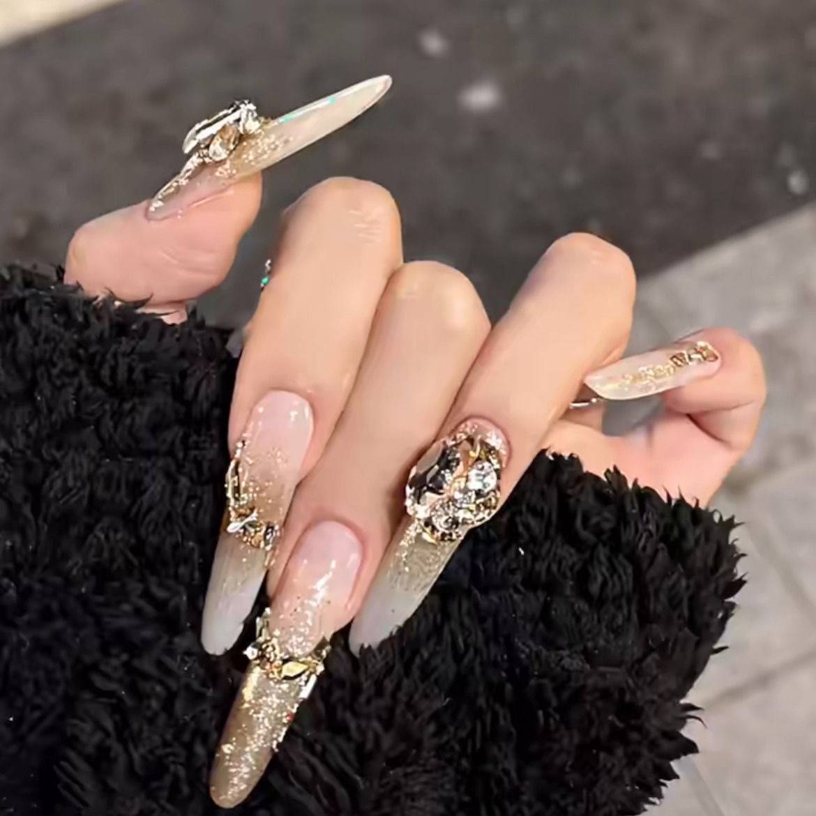 手工定制长款椭圆形穿戴甲富家千金小姐显手长鸽子蛋小红书爆款