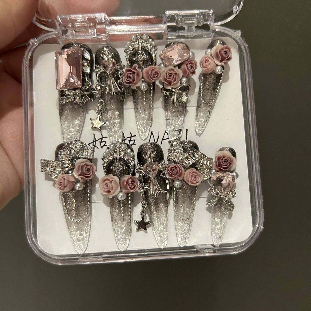重工纯手工美甲显白玫瑰雕花穿戴新款高级学生ins全套手工穿戴甲