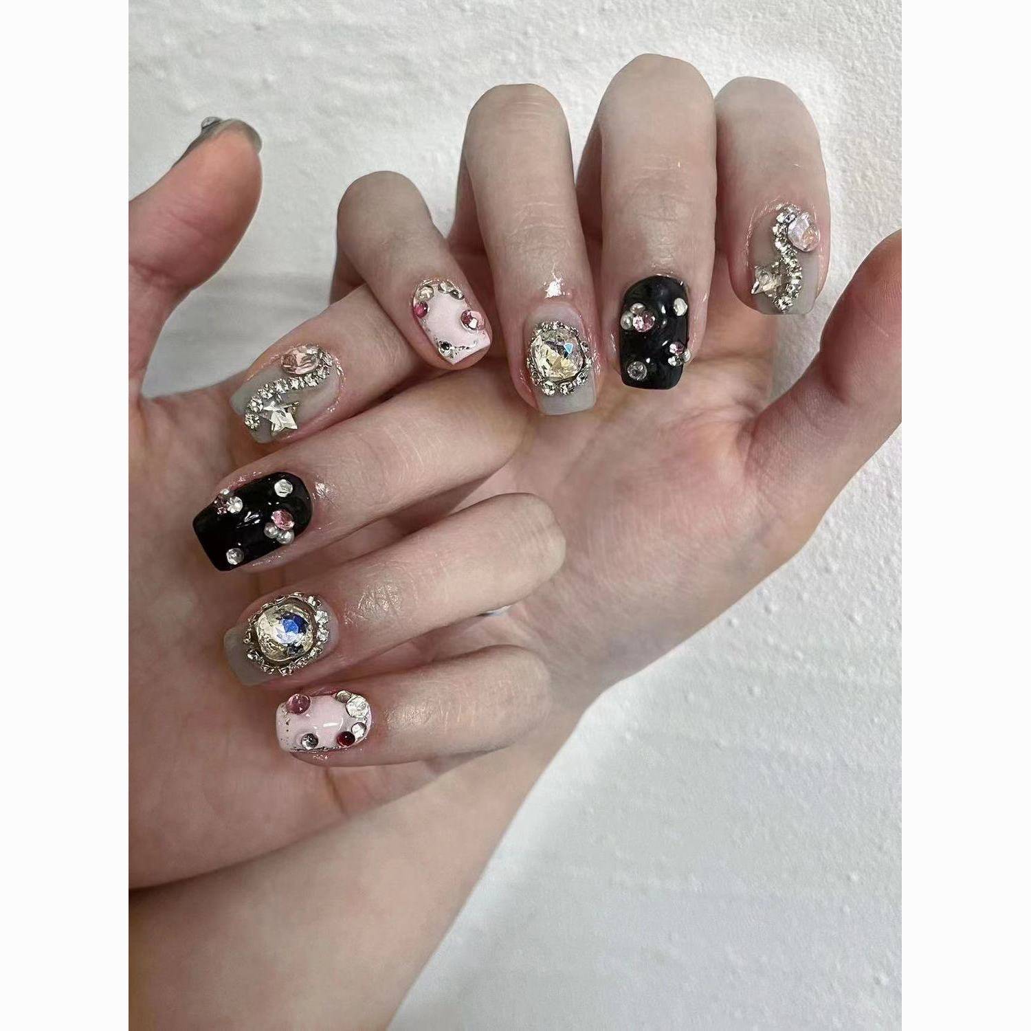 原创琉璃甲黑粉配色纯手工穿戴甲片夏日新款高级气质款式