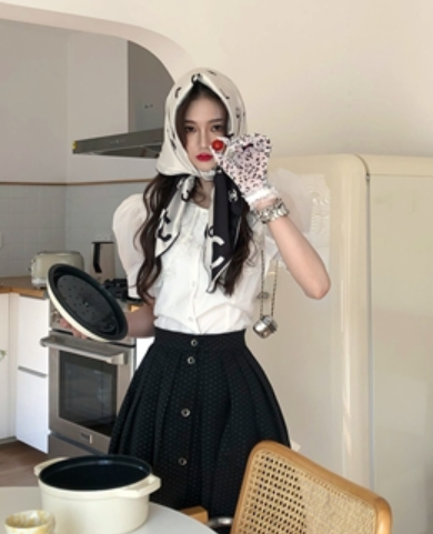 弗利山庄的安妮 南法蕾丝质蝴蝶结系带泡泡袖复古白衬衫