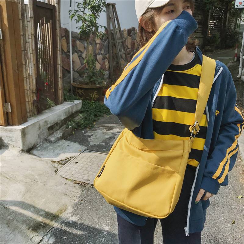ulzzang原宿帆布包新款少女个性单肩包文艺ins日系简约时尚斜挎包