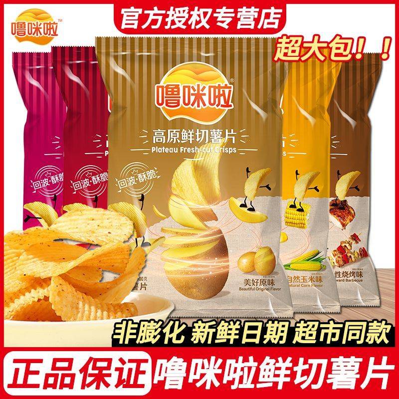 噜咪啦薯片100克超大包5袋装学生宿舍休闲零食云南原切薯片土豆片